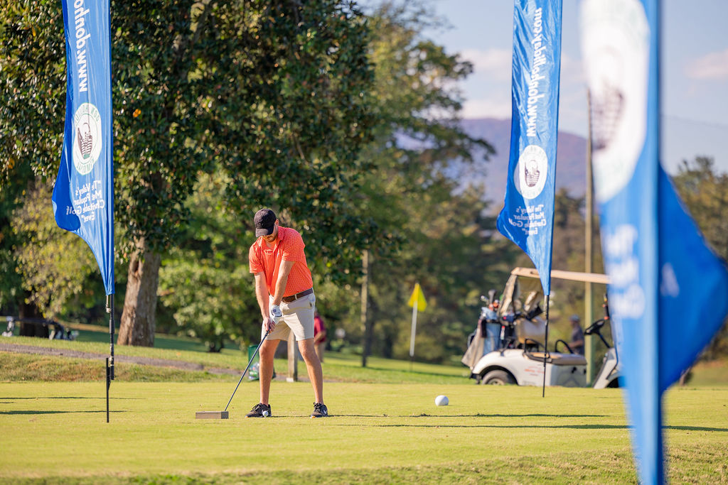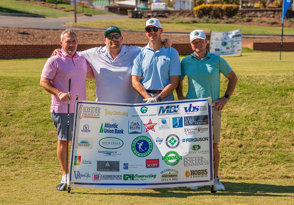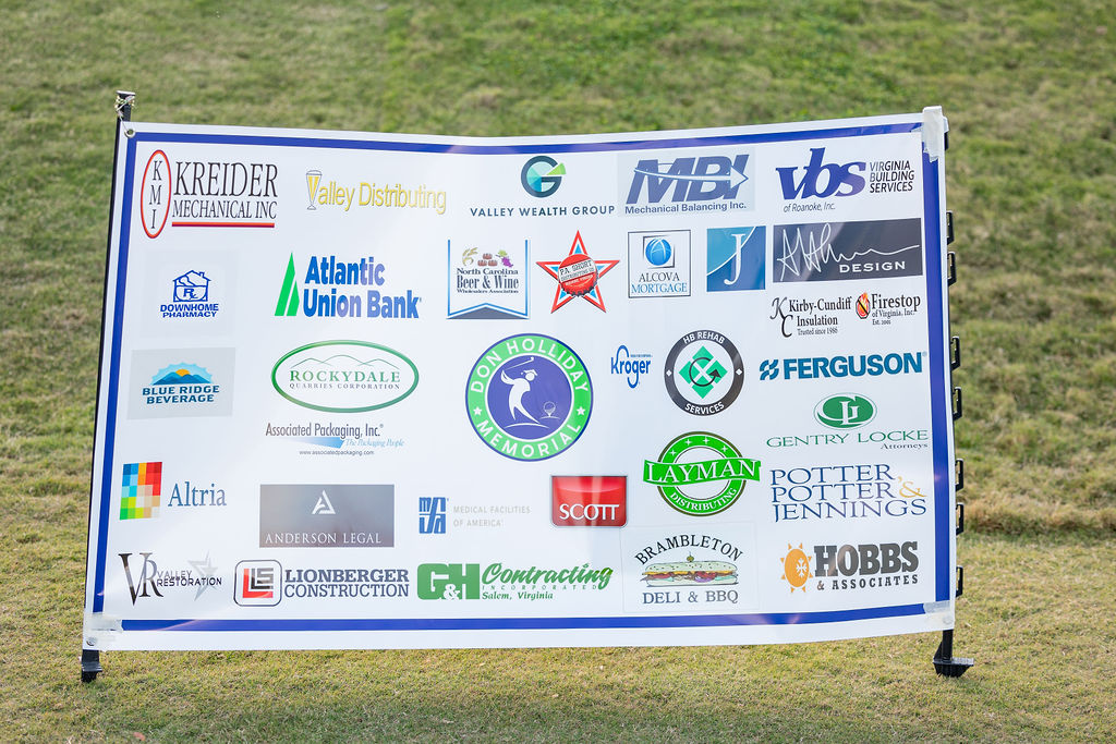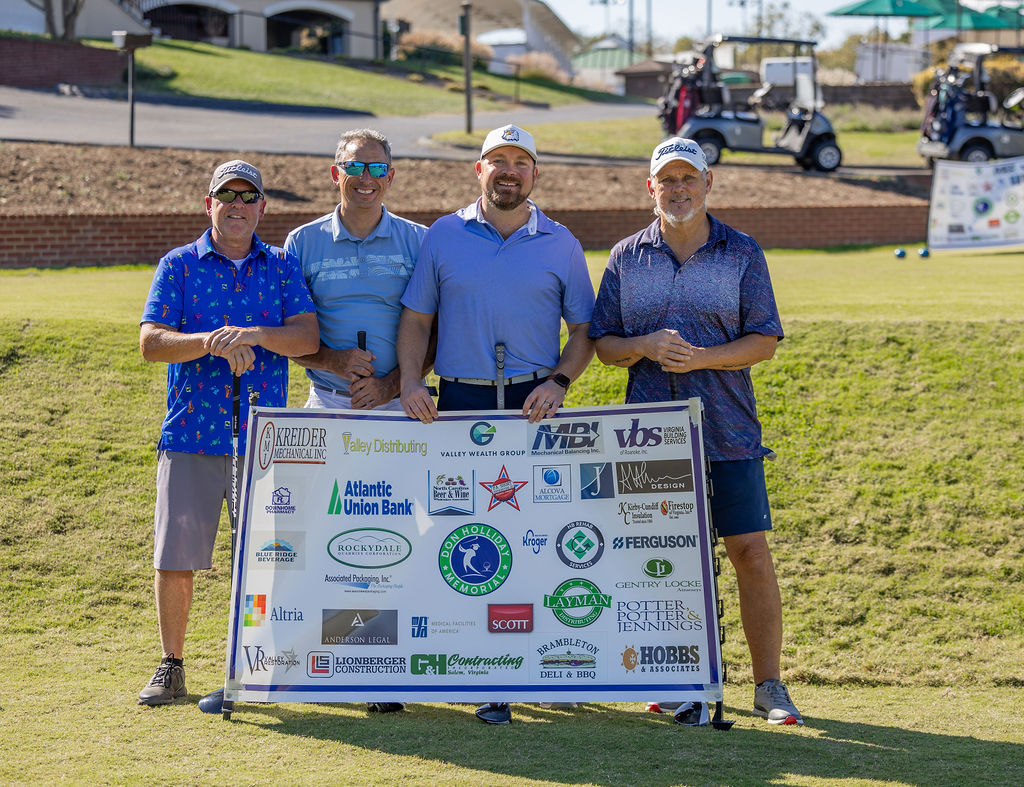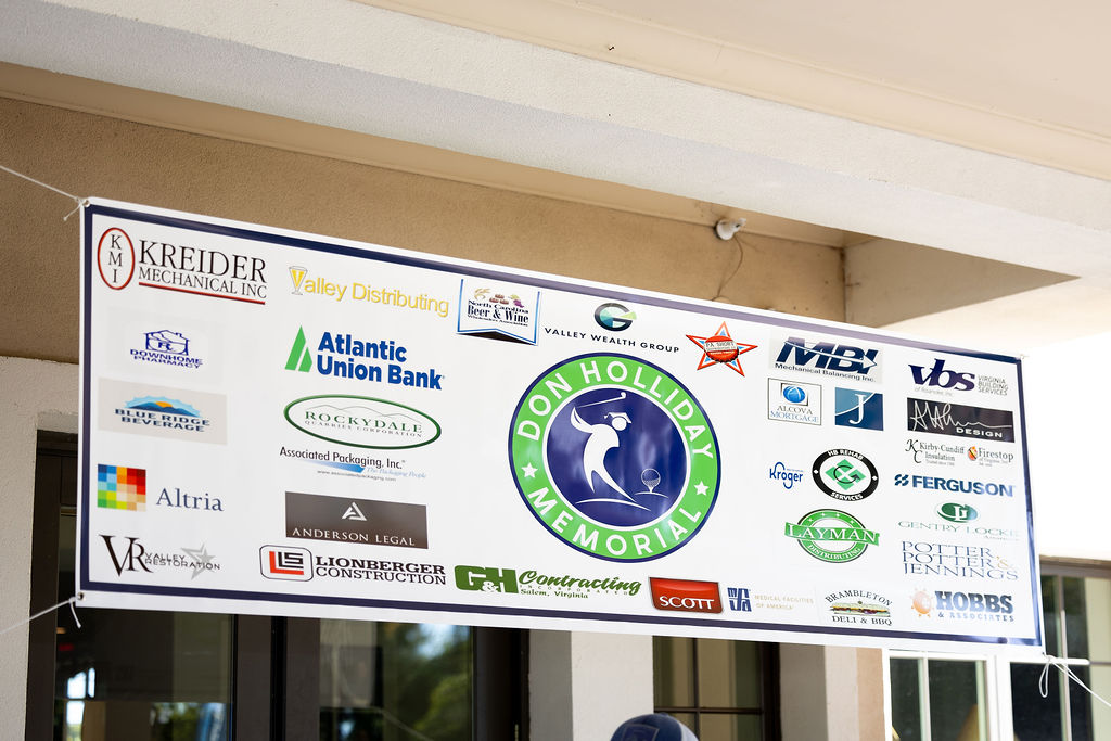 The Don Holliday Tournament is a one-day format, Captain's Choice, where 188 players participate. Every player gets a gift and there are many items to buy at auction. Thanks to the many fine merchants and friends in the Roanoke Valley who donate door prizes and other items for our players. The Don Holliday Tournament has become the most popular charitable/scholarship fund raising event in Virginia.