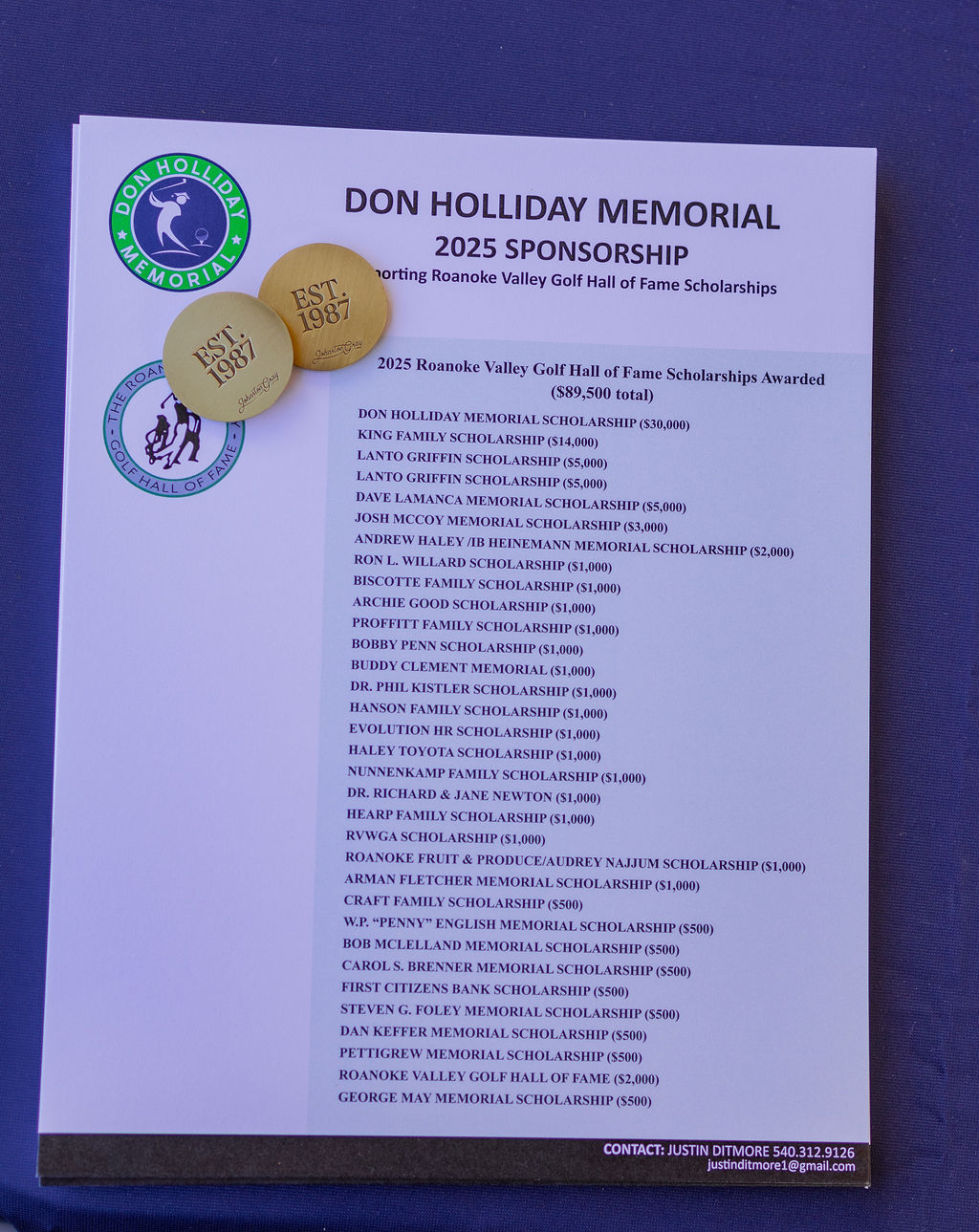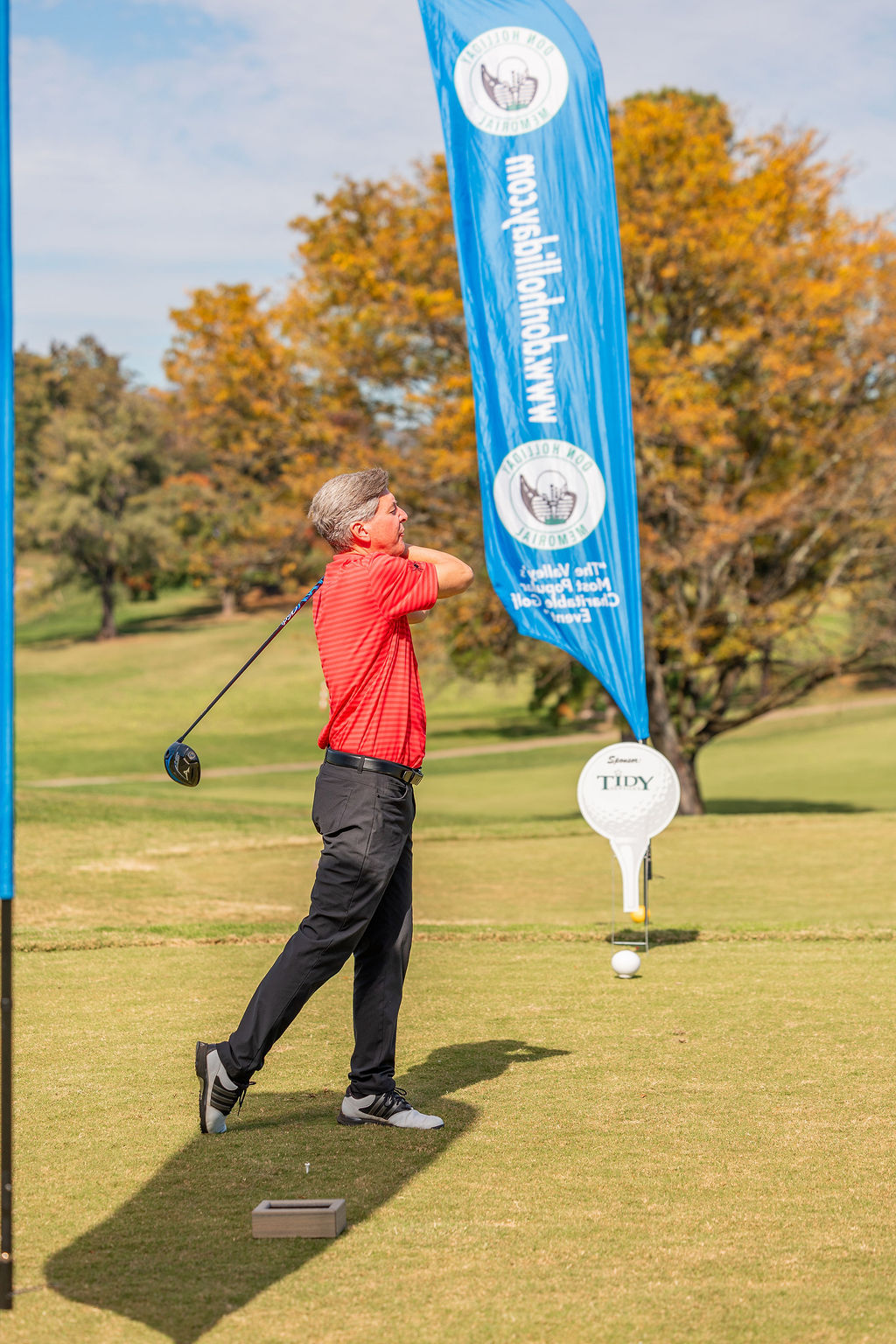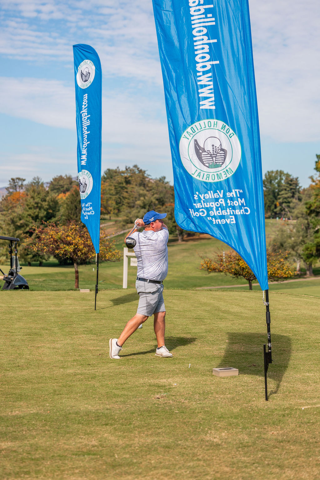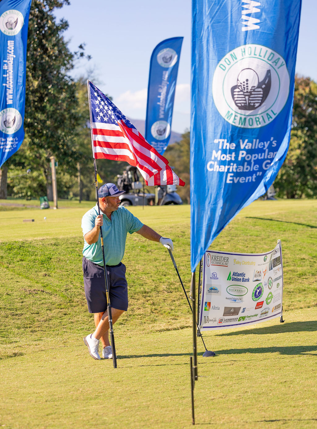 The Don Holliday Tournament is a one-day format, Captain's Choice, where 188 players participate. Every player gets a gift and there are many items to buy at auction. Thanks to the many fine merchants and friends in the Roanoke Valley who donate door prizes and other items for our players. The Don Holliday Tournament has become the most popular charitable/scholarship fund raising event in Virginia.